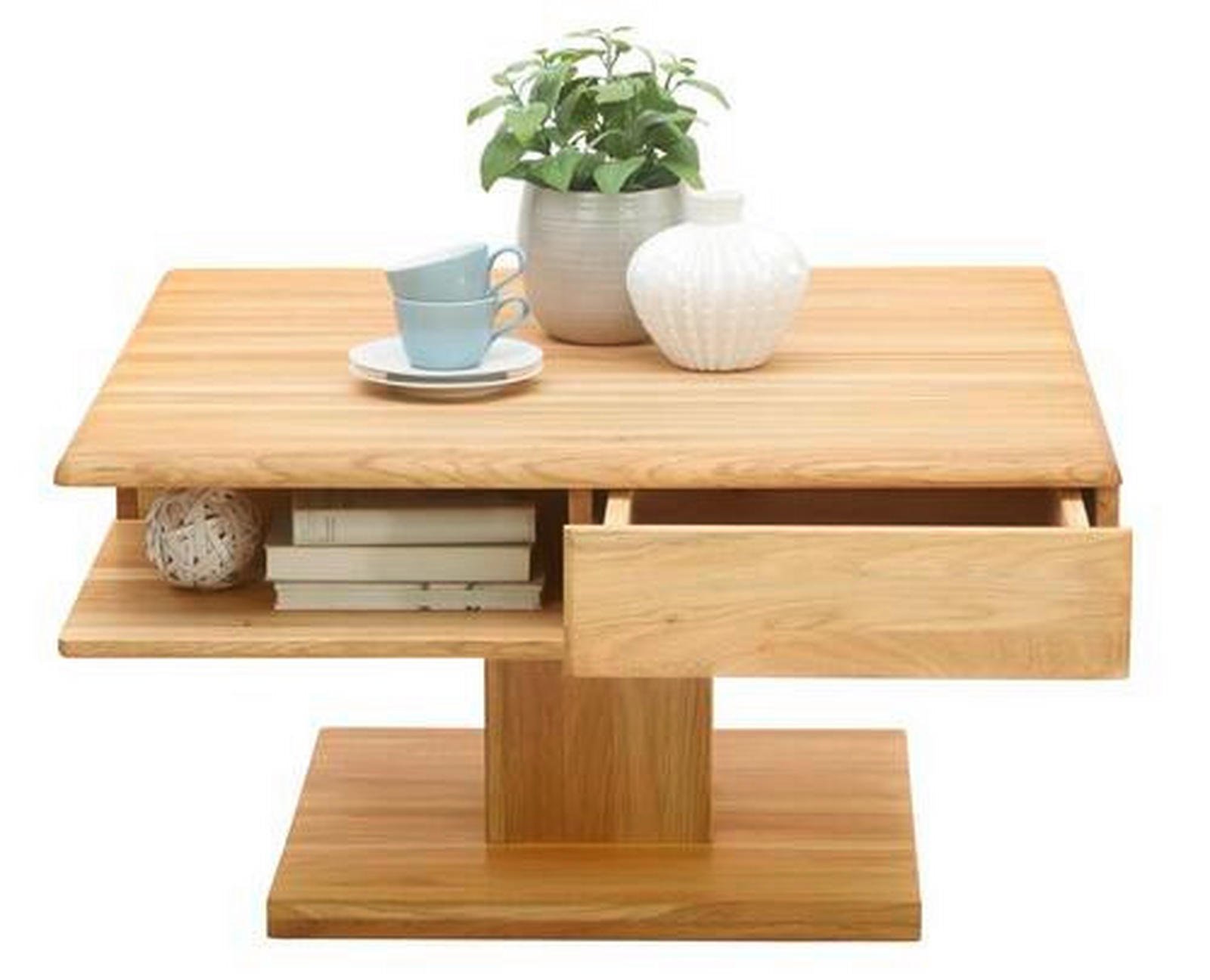 Linea Natura kavos staliukas, masyvi ąžuolo mediena, 80/80/47 cm, kvadratinis, ąžuolo spalvos – Iki 40 kg apkrova ir 2 stalčiai