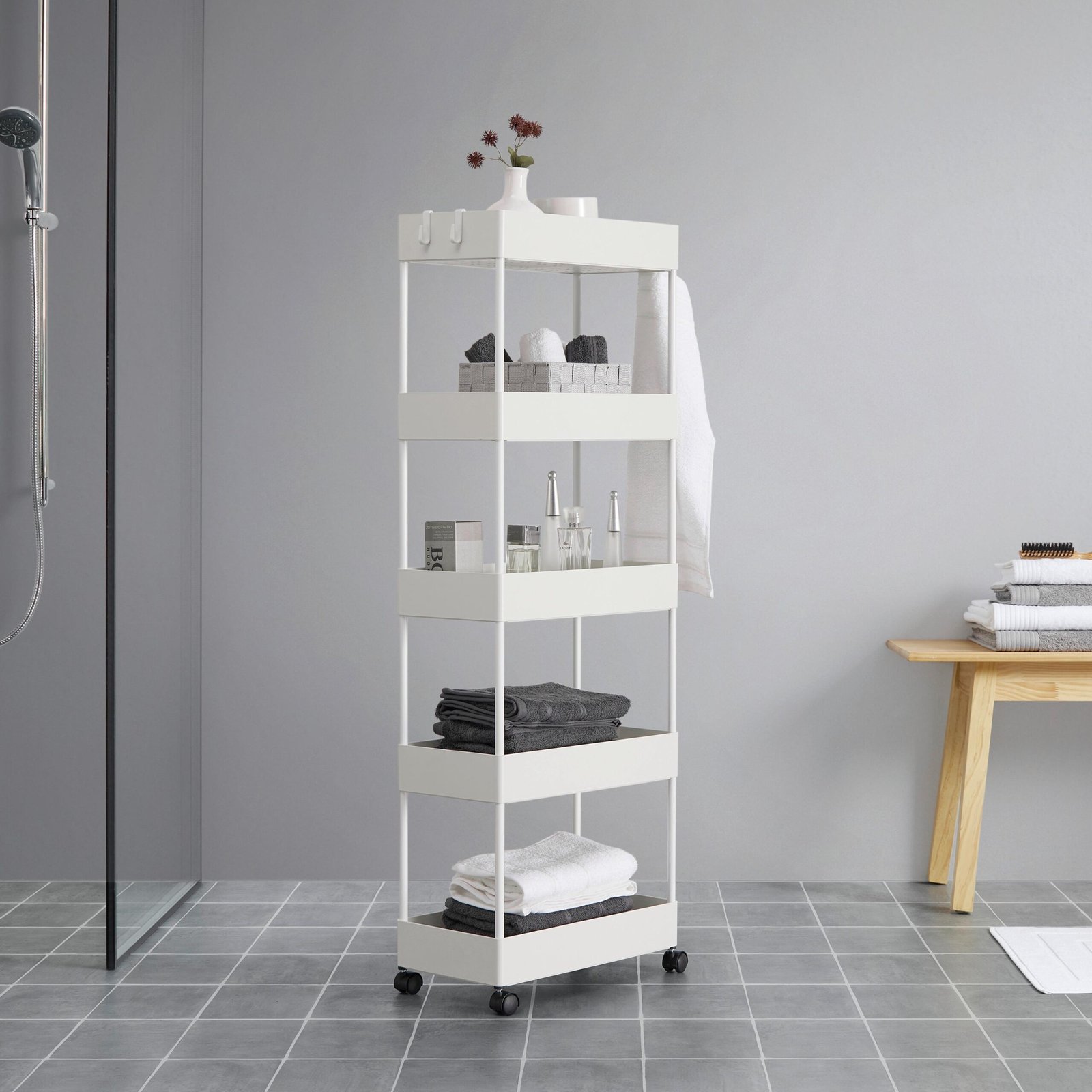 Kaip namų organizavimo priemonė, šis vežimėlis pasižymi mobilumu dėl integruotų ratukų ir vertikalia konstrukcija, leidžiančia taupyti erdvę. Lyginant su standartinėmis stacionariomis lentynomis, šis modelis suteikia lankstumo, nes jį lengva perstumti į kitą vietą, pritaikant pagal poreikius.